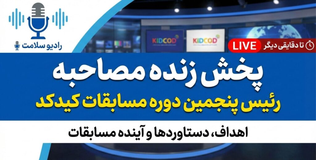 پخش مصاحبه زنده رئیس پنجمین دوره مسابقات کیدکد تا دقایقی دیگر از رادیو سلامت 🎙️